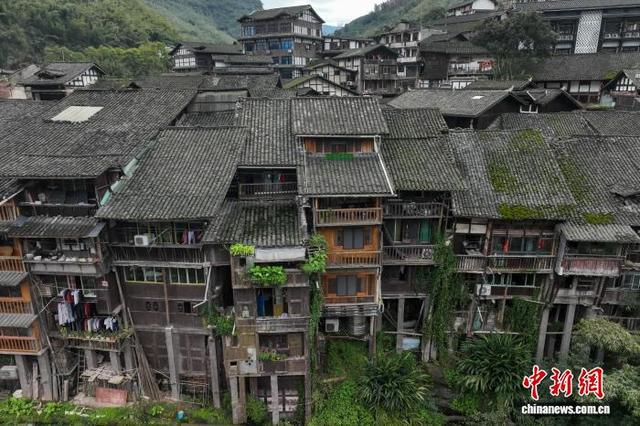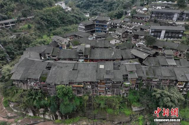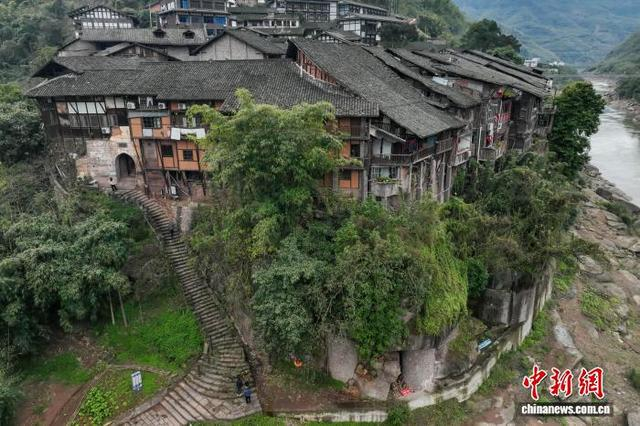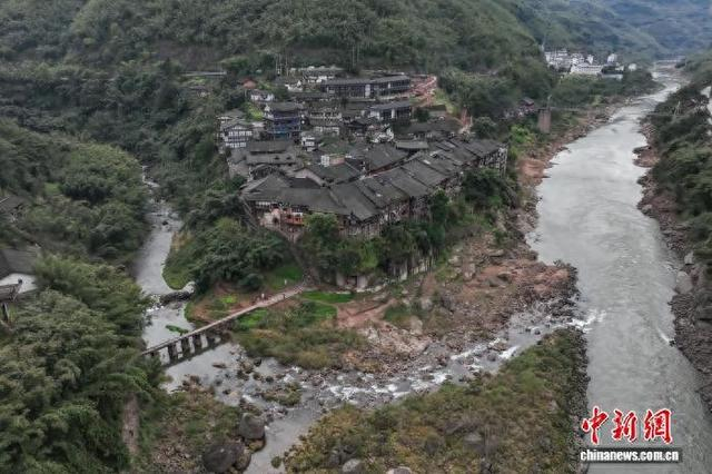 1月31日,航拍贵州赤水丙安古镇。丙安古镇位于贵州省赤水市,旧时为赤水河航运最繁荣的水陆码头,为川南入黔的古道上重要场镇,从明清时便是商贾云集的重要场所。古镇三面濒临赤水河,依然保留着历经风霜的石板路,沿河峭壁悬岩河畔建成的吊脚风格,悬空楼、虚脚楼、无底楼、独柱高脚楼等错落而置。丙安还是红军长征中一渡赤水的渡口,红一军团第二师和师团部曾在此扎营。 瞿宏伦 摄