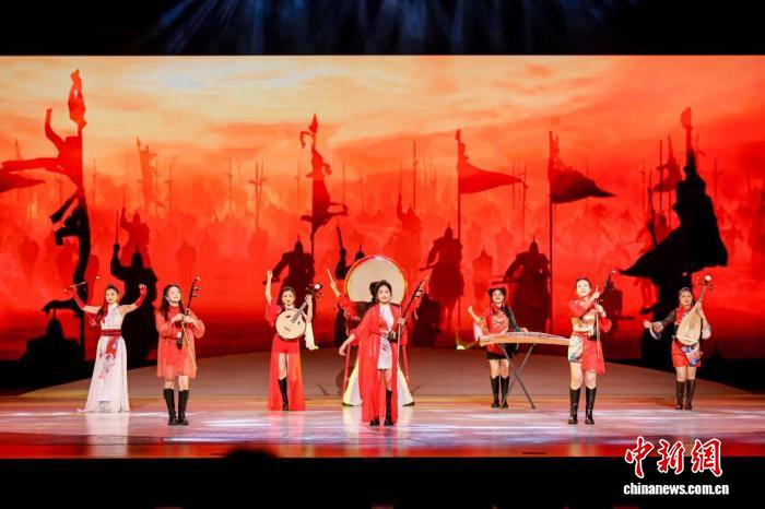 粤曲《彩云追月》演唱现场。广东卫视 供图多位民乐名家联袂献艺。斗琴《赛马》在保留原曲奔腾意象的基础上,融入现代和声与节奏设计,二胡与古筝、琵琶、笛子等乐器竞奏,宛如一场跨越时空的弦上对话;《战马奔腾》则以恢弘的编曲,从独奏渐次发展为气势磅礴的全乐章合奏。