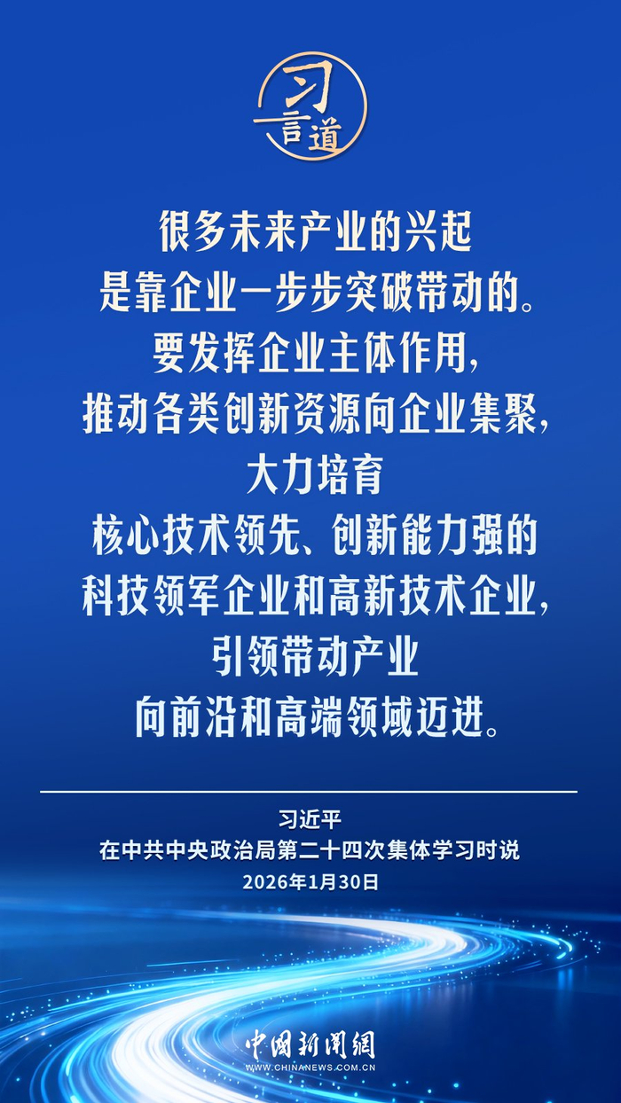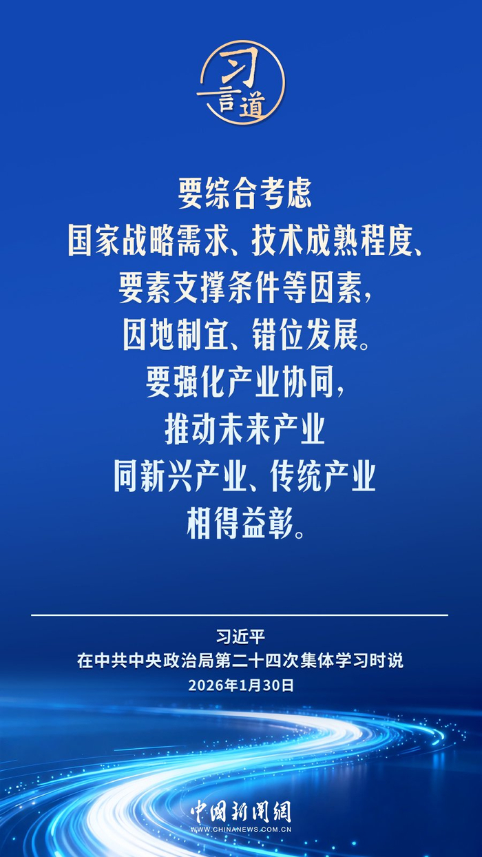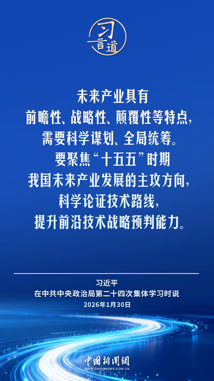 中共中央政治局1月30日就前瞻布局和发展未来产业进行第二十四次集体学习。中共中央总书记习近平在主持学习时强调——