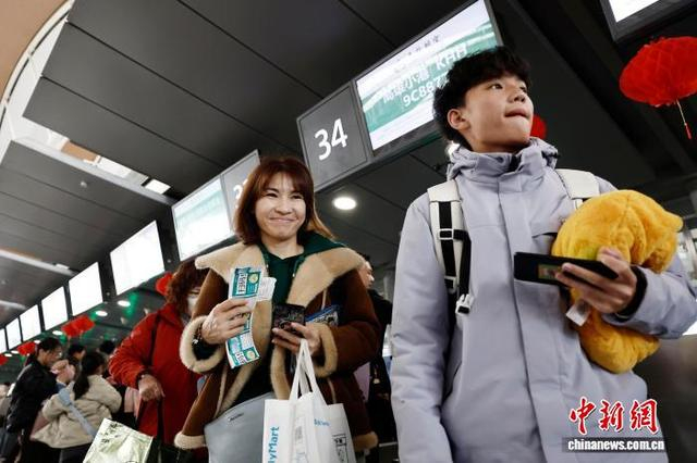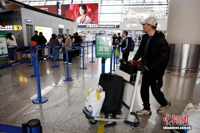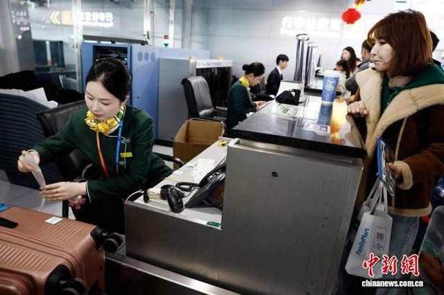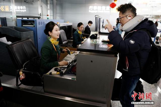 2月1日,旅客在浦东国际机场T2航站楼办理登机手续。当日,春秋航空恢复上海浦东至高雄的直飞航线,保障台胞春节返乡出行。中新社记者 殷立勤 摄