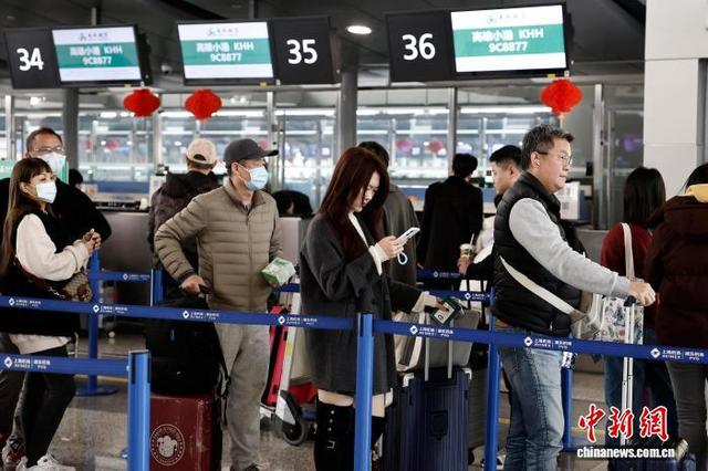 2月1日,旅客有序在浦东国际机场T2航站楼内等待办理登机手续。当日,春秋航空恢复上海浦东至高雄的直飞航线,保障台胞春节返乡出行。中新社记者 殷立勤 摄