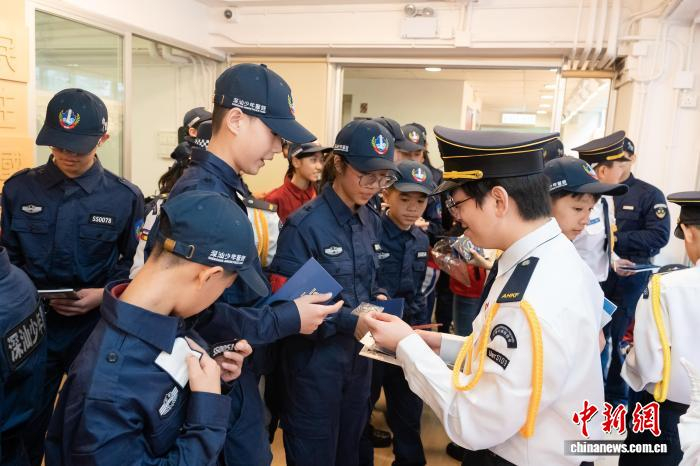 深港两地少年互换纪念品。深圳警方供图少警们在返程途中仍沉浸其中,彼此分享感受与收获。“这次交流让我更清楚地认识到,我们不仅是深圳的少警,更是大湾区未来的参与者。”少警队员蔡宇铭在分享会上说。另一位队员林梓烯说:“和香港伙伴一起升旗时,那种自豪感和责任感是实实在在的。”