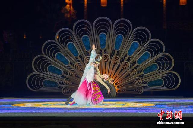2月1日,陕西西安,2026年《长恨歌》在华清宫景区首演,并在视野、光影、舞台场景、舞蹈编排等方面进行了全新升级。图为唐明皇与杨贵妃共舞。中新社记者 张远 摄
