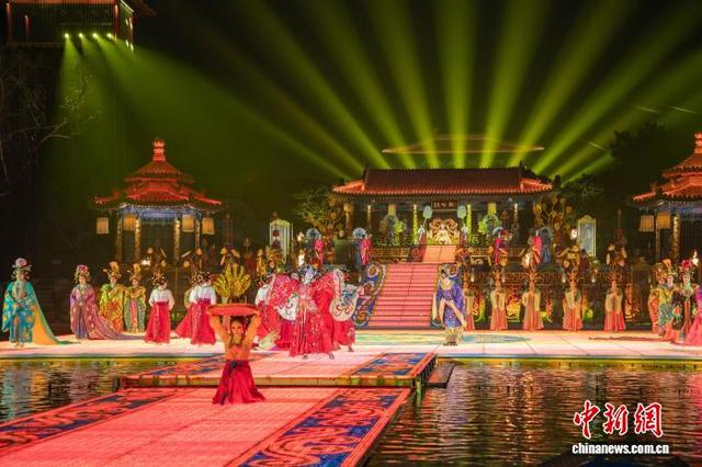 2月1日,陕西西安,2026年《长恨歌》在华清宫景区首演,并在视野、光影、舞台场景、舞蹈编排等方面进行了全新升级。图为演出现场。中新社记者 张远 摄