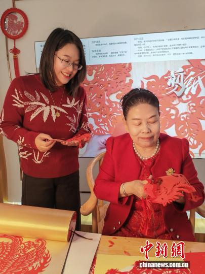 图为伏兆娥(右)和女儿一起剪纸。中新网记者 于晶 摄“剪纸是中国人过年的‘文化菜’。”“剪纸的根在生活,魂也在生活。”伏兆娥的指尖轻轻抚过剪纸边缘,目光温柔。对她而言,马年剪纸不只是应景的装饰,更是刻入生命的情感仪式。