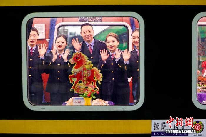 2月2日,为期40天的2026年春运正式启动。中国铁路青藏集团有限公司预计发送旅客205万人次,较去年春运增幅1.03%。图为列车工作人员在车厢内挥手致意。中新社记者 薛蒂 摄