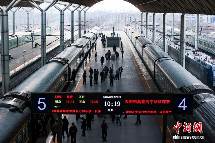 2月2日,为期40天的2026年春运正式启动。中国铁路青藏集团有限公司预计发送旅客205万人次,较去年春运增幅1.03%。图为春运首日西宁火车站站台。中新社记者 薛蒂 摄