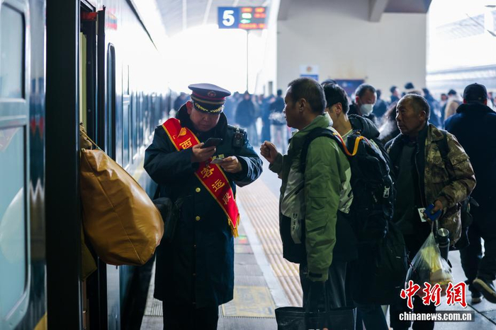 2月2日,为期40天的2026年春运正式启动。中国铁路青藏集团有限公司预计发送旅客205万人次,较去年春运增幅1.03%。图为旅客在西宁火车站验票乘车。中新社记者 薛蒂 摄