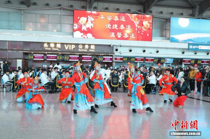 图为春运首日,大连机场举办新春活动。李倩倩 摄航司方面,据南航大连分公司消息,春运期间,南方航空计划在大连执行航班约4239班,相较去年春运整体航班增加100-200班,国际航线大连-首尔加密至每日3班。