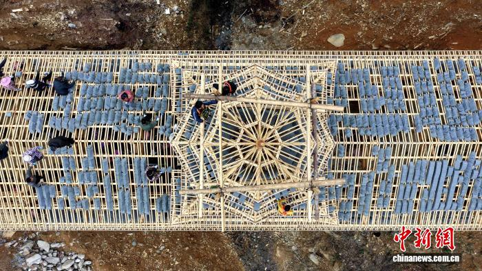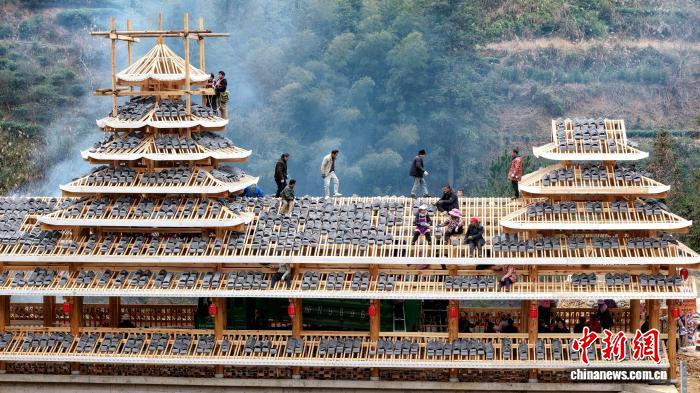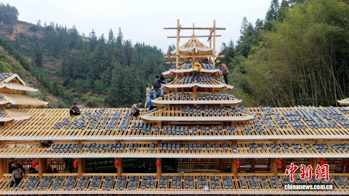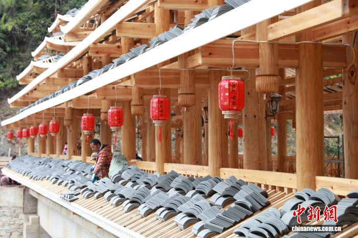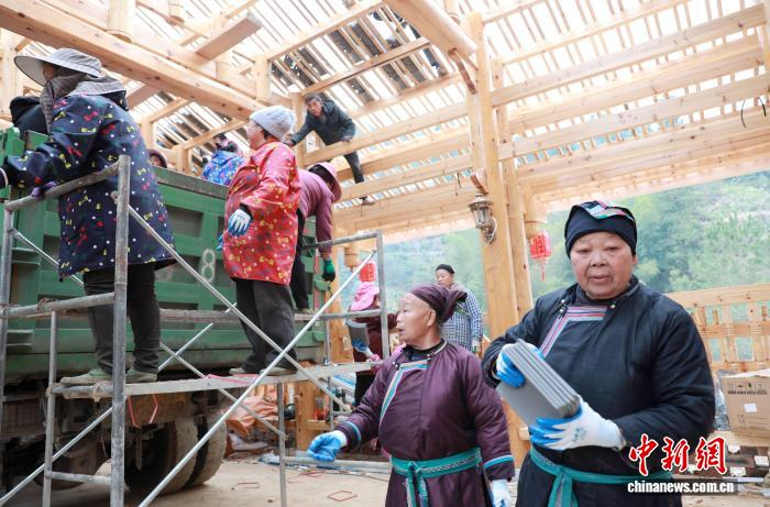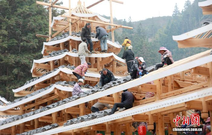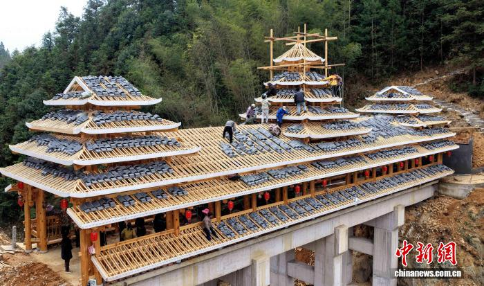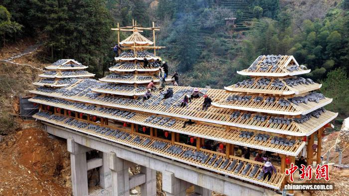 2月2日,在广西三江侗族自治县林溪镇牙己村,村民们正在进行新建风雨桥的盖瓦、清理土方等工作,以确保风雨桥在春节前全面竣工。风雨桥不仅是侗乡民众日常通行、休憩交流的重要场所,更是传统建筑技艺与民俗文化的集中体现。图为村民在卸瓦。龚普康 摄