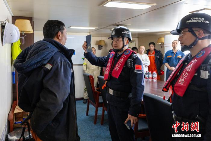 2月3日,宁德边检站移民管理警察在半潜船“希望之路”轮,对即将出境的船员开展证件检查。王志凌 摄针对此次半潜船作业潜深大、涉及海域广、作业周期长的特点,宁德出入境边防检查站通过建立“企业对接—方案定制—现场执行”全链条服务机制,提前核验船舶资料、办理完成80余名作业人员登轮及船舶搭靠行政许可,创新推行“查验点前移+锚地驻船”模式,持续优化半潜船业务“一船一策”保障方案,为外贸经济提质增效保驾护航。