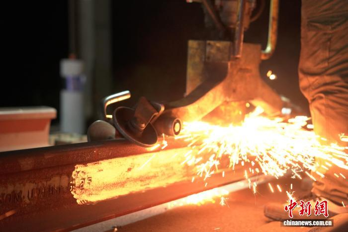 焊轨机持续升温,通红的焊渣裹挟着高温飞出,在夜色中划出赤色弧线,即便隔着护目镜,高温的灼烧感仍清晰可感。短短2分钟内,焊接处温度飙升至900摄氏度,钢轨从原本的褐色逐渐转为鲜红,最终化作白炽状,约1分钟,新旧钢轨便牢牢焊为一体。