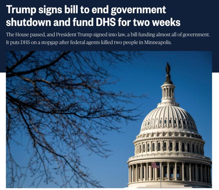 报道称,该法案将确保美国联邦政府多个部门在9月底前获得拨款,唯一的例外是国土安全部。该部门近期因移民执法行动引发争议和抗议,此次仅获得两周的资金,以便各方继续就改进该部门运作进行谈判。