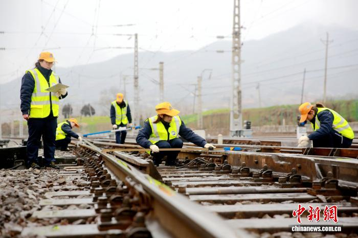 中新网陕西安康2月4日电(张远 张霖)“水平4毫米,轨距1毫米。”轨距尺架在钢轨上,24岁的吴子婧屏息凝神核验着仪器上的数据。4日,秦巴山区的晨雾还未散尽,安康东站编组场内,五朵“迎春花”已在线路间忙碌开来。她们是西安局集团公司安康工务段安康东线路车间“迎春花”检查组的女职工。