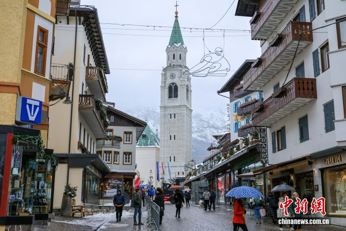 当地时间2月4日,2026年米兰-科尔蒂纳冬奥会开幕在即,作为本届冬奥会分赛区之一的科尔蒂纳丹佩佐的街头冬奥会氛围渐浓。中新社记者 骆云飞 摄