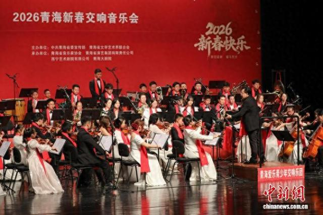 2月4日晚,“2026青海新春交响音乐会”在省会西宁上演。图为青海爱乐青少年交响乐团担纲演奏。中新社记者 马铭言 摄