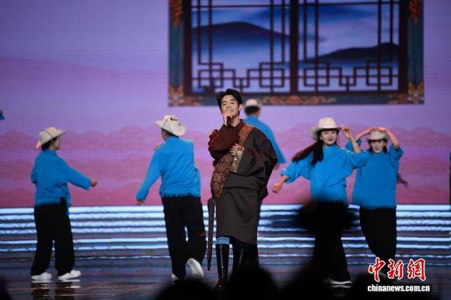2月4日晚,“西藏拉萨市2026年春节藏历火马新年联欢会”在拉萨市群众文化体育中心录制。据悉,30余个精品节目将于2月18日(藏历新年初一)8时开播。图为丁真演唱歌曲《我们的明天》。中新社记者 贡嘎来松 摄