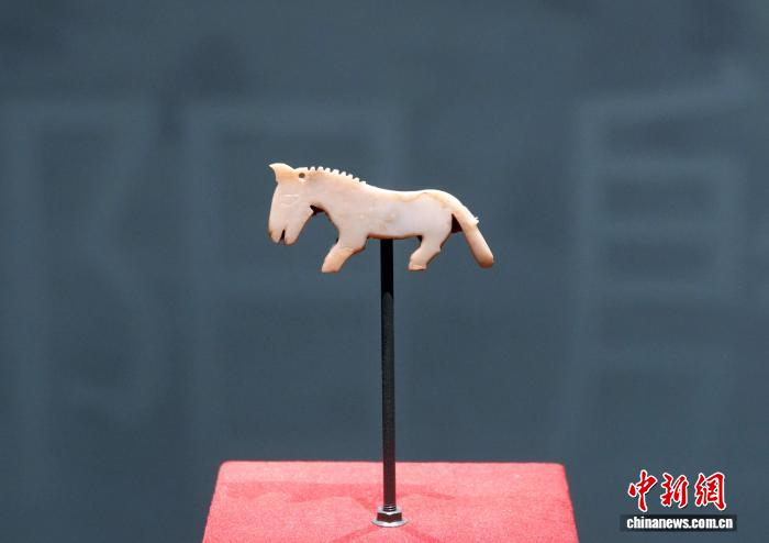 殷墟妇好墓出土的玉马。中新网记者 孙自法 摄展览还策划推出“文明星空·龙马精神”专题图文展项,以一幅跨越5000多年的文明画卷,梳理“龙”“马”在中华历史文化长河中的形象演变。从新石器时代红山文化的“C”形玉龙、二里头文化的绿松石龙形器,到历代玉马、陶马、铜马、车马坑乃至相关壁画,生动诠释了中华“龙马精神”这一文化意象的源流与发展。