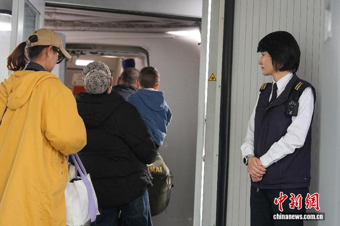 2026年春运,是重庆航空女安全员邓莉娜参加工作的第20个春运。自2006年入职以来,她已累计安全飞行超过1.28万小时,在万米高空守护一次次平安起落。出生在新疆生产建设兵团、警校毕业的邓莉娜于2006年加入中国南方航空新疆分公司,成为南航首位女性安全员;2025年,又与同为安全员的丈夫调至南航旗下重庆航空,继续坚守飞行一线。作为一名在客机上执行安全保卫任务的航空安全员,她与男队员接受同强度训练,在看似平常的航程中始终保持高度警觉。“对我们航空安全员来说,春运意味着航班更多、任务更重、责任也更大。今年大概率还是不能在家团圆,但能和旅客、同事一起在岗位上过年,我觉得同样有意义。”作为重庆航空唯一的“双安全员家庭”,她与丈夫常年错开飞行周期,只为让孩子身边始终有人陪伴。“把每一趟航班守护好,让每一位旅客平安回家、团圆,就是我们在春运里最大的心愿。”邓莉娜说。图为2月5日,邓莉娜在春运中保障其执飞的CZ2311次航班。中新社记者 何蓬磊 摄