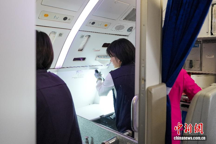 2026年春运,是重庆航空女安全员邓莉娜参加工作的第20个春运。自2006年入职以来,她已累计安全飞行超过1.28万小时,在万米高空守护一次次平安起落。出生在新疆生产建设兵团、警校毕业的邓莉娜于2006年加入中国南方航空新疆分公司,成为南航首位女性安全员;2025年,又与同为安全员的丈夫调至南航旗下重庆航空,继续坚守飞行一线。作为一名在客机上执行安全保卫任务的航空安全员,她与男队员接受同强度训练,在看似平常的航程中始终保持高度警觉。“对我们航空安全员来说,春运意味着航班更多、任务更重、责任也更大。今年大概率还是不能在家团圆,但能和旅客、同事一起在岗位上过年,我觉得同样有意义。”作为重庆航空唯一的“双安全员家庭”,她与丈夫常年错开飞行周期,只为让孩子身边始终有人陪伴。“把每一趟航班守护好,让每一位旅客平安回家、团圆,就是我们在春运里最大的心愿。”邓莉娜说。图为2月5日,CZ2311次航班上,邓莉娜对飞机卫生间进行安保检查。中新社记者 何蓬磊 摄