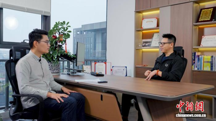 上海青年创业者王君(右)接受中新网专访。 钟欣 摄创业维艰:工业物流数字化的“冷板凳”岁月
