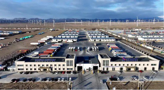 天山与巴尔鲁克山之间,一条古老的通道贯穿戈壁。这里盛产大风,每年大风天气超过160天,8级以上强风曾是其著名的“标签”。如今,这座边陲小城——阿拉山口,却在风与沙的呼啸中,见证着另一种流动的炽热。