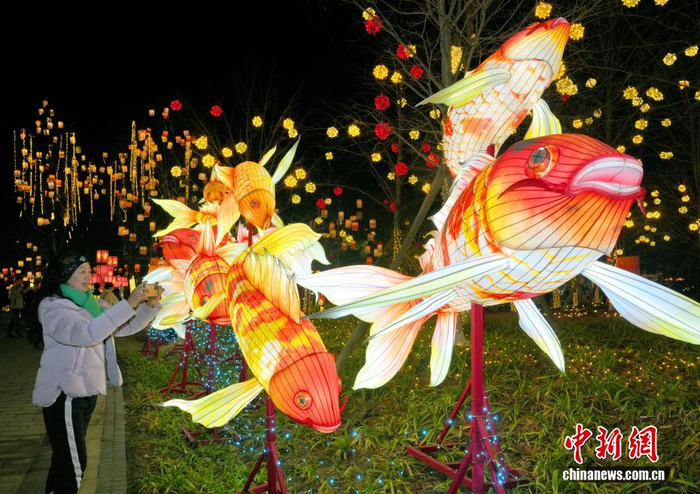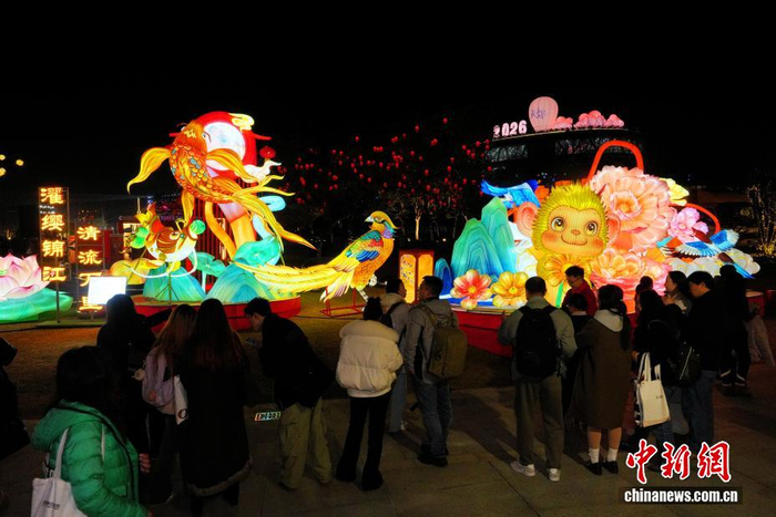 2月6日晚,第55届成都国际熊猫灯会在成都市龙泉驿区东安湖溪峰岛正式亮灯。本届灯会以“川灯耀世界·梦幻东安湖”为主题,围绕国宝、蜀道、三国、诗词、驿马、客家等四川特色文化元素,通过40余组彩灯,在330余亩的溪峰岛上呈现“五区一心”赏灯带——“川灯开新篇”“锦城烟火盛”“蜀道马蹄疾”“古驿桃花香”“兴旺幸福年”和“溪峰之巅”,并创新开展IP联创、场景融合、演艺互动等方式,融入“蓉城囍事”“少必入川”“清廉蓉城”等品牌元素,打造一个可观、可游、可感、可消费的沉浸式彩灯世界。图为“锦里入川”灯组吸引游客拍照。中新社记者 安源 摄