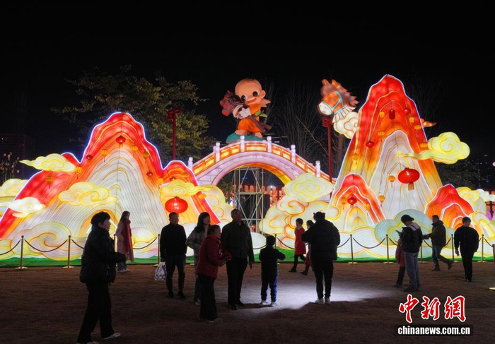 2月6日晚,第55届成都国际熊猫灯会在成都市龙泉驿区东安湖溪峰岛正式亮灯。本届灯会以“川灯耀世界·梦幻东安湖”为主题,围绕国宝、蜀道、三国、诗词、驿马、客家等四川特色文化元素,通过40余组彩灯,在330余亩的溪峰岛上呈现“五区一心”赏灯带——“川灯开新篇”“锦城烟火盛”“蜀道马蹄疾”“古驿桃花香”“兴旺幸福年”和“溪峰之巅”,并创新开展IP联创、场景融合、演艺互动等方式,融入“蓉城囍事”“少必入川”“清廉蓉城”等品牌元素,打造一个可观、可游、可感、可消费的沉浸式彩灯世界。图为“神骏出东方”灯组吸引游客参观。中新社记者 安源 摄