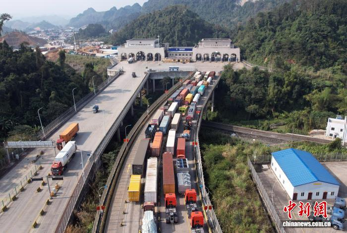 图为航拍繁忙的友谊关口岸。中新网记者 蒋雪林 摄加快建设贸易强区