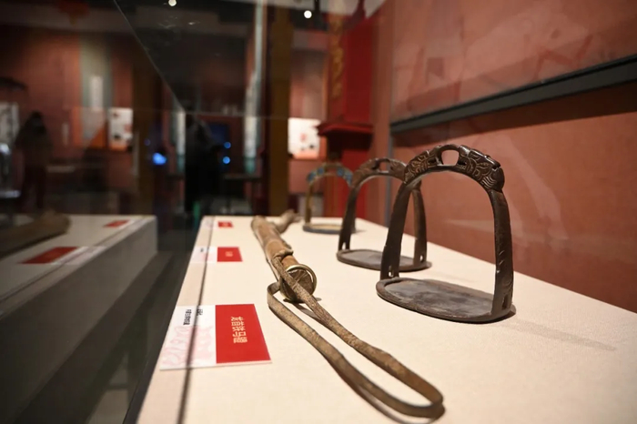 “马舞新春——丙午马年全球生肖文化联展”在呼和浩特市内蒙古博物院开展。图为展出的马鞭与马镫。中新社记者 刘文华 摄英国科技史学家李约瑟曾指出,就像中国的火药在封建社会的最后阶段帮助摧毁了欧洲封建社会一样,中国的马镫在最初帮助了欧洲封建制度的建立。美国史学家林恩·怀特直言:“马镫造就了骑士。”