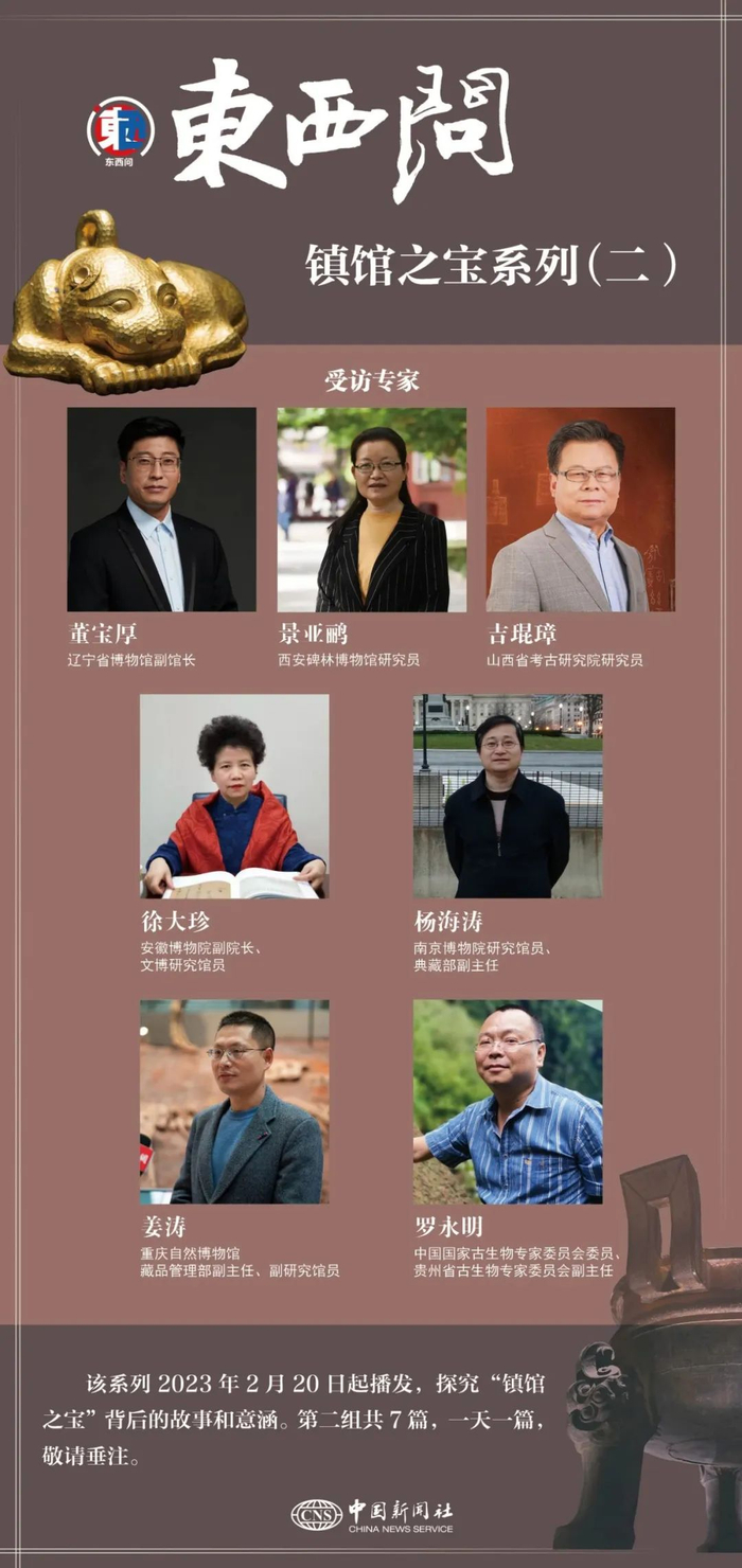 国宝之美,穿越古今,器以载道,恢弘万千。每件珍稀文物背后,都凝聚着古人的匠心智慧,镌刻着中华民族的文化基因,见证着中外文明的交流互鉴。从2023年2月20日起,中新社“东西问”推出“镇馆之宝”系列策划(二),藉专家探究文物之意涵及其背后故事。