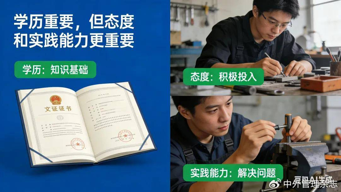 爱迪生没有学历,却是人类第一发明家;瓦特只是技工,但开创了人类工业时代。爱迪生没有理论知识,他只是关心人类的需要,痛点在哪里,去把它造出来。瓦特没有去做0到1的创造,他只是关心设备的效率,浪费在哪里,他去把它解决掉。所以,文凭不代表水平,学历不等于能力,关键是具备掌握分析和解决实际问题的逻辑和技能。(杨光)