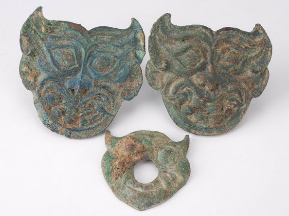 西汉人面纹铜牌饰广西壮族自治区博物馆藏铜鼓是广西地区青铜文化的代表性器物之一,其鼓面中心常饰以太阳纹,鼓面和鼓身则饰以翔鹭纹、划船纹和羽人舞蹈纹等富有民族特色的纹饰。