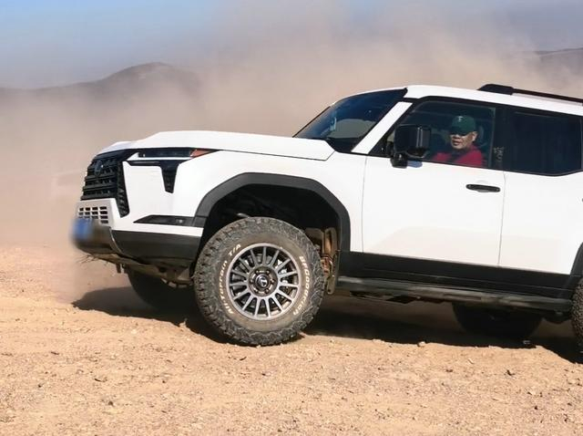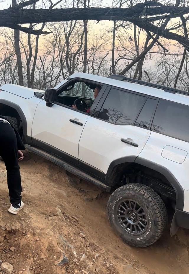说真的,在国内,买百万级越野车的人简直不要太多,但真正玩嗨的人屈指可数,即便很多老板有钱有闲,他们也不会去野外越野,原因很简单,真正的越野,又脏、又累、还有风险,关键还不体面,再来看看于东来,雷克萨斯GX550使用的是越野胎,这一看就是真正的越野玩家,这种轮胎不安静、不省油、舒适性也一般,最大的优势就是抓地力比较好,所以,如果不是真正的越野爱好者,根本不会用这种轮胎。