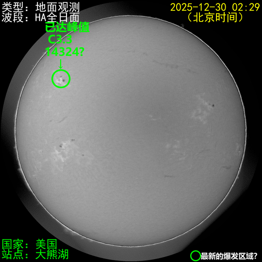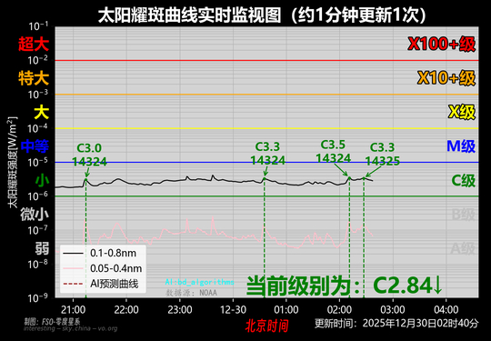 太阳黑子群14324?*在北京时间02时27分爆发了一个小太阳耀斑事件,其最大值为C3.3级。