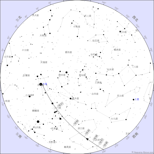 您所在地的时间预报详细情况可利用heavens-above进行查询。