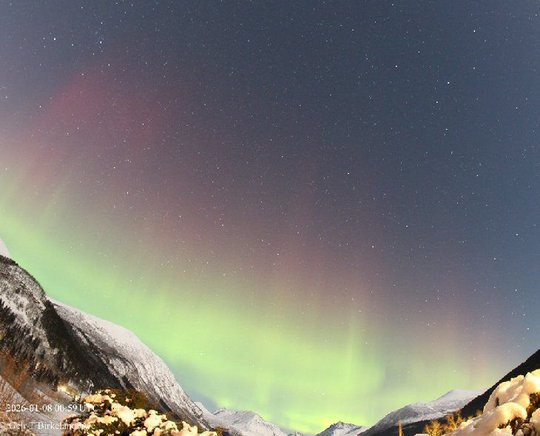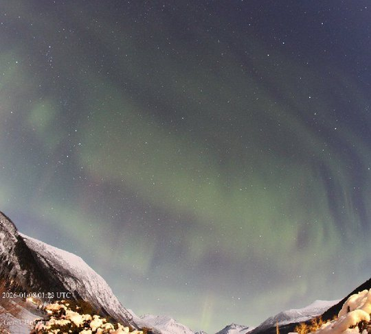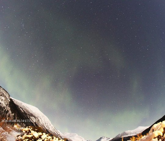 2026年1月7日至8日(一个寒冷的夜晚,气温为20摄氏度)的几张北极光图片。当地时间午夜前后,北方出现了一条极光带。请查收随附的带有UTC时间的图片。