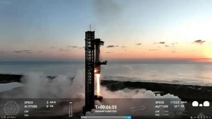 这次试射,不仅实现了飞行过程中的稳定与精准控制,更首次实现了星舰一级助推器的塔架悬臂回收,这一里程碑式的成就标志着航天器可重复使用技术迈入了一个全新的阶段。