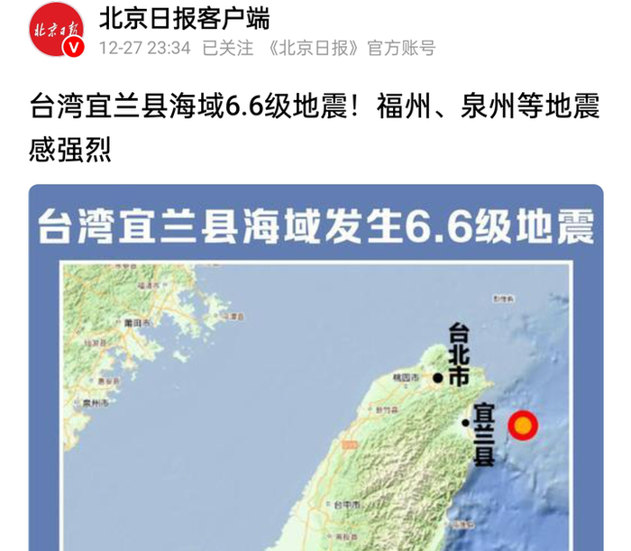 光明网12月28日报道《台气象部门:台湾东部海域发生7.0级地震》 https://m.toutiao.com/is/gzumqqBYlJU/ gzumqqBYlJU` S@y.tR :7pm eRk:/