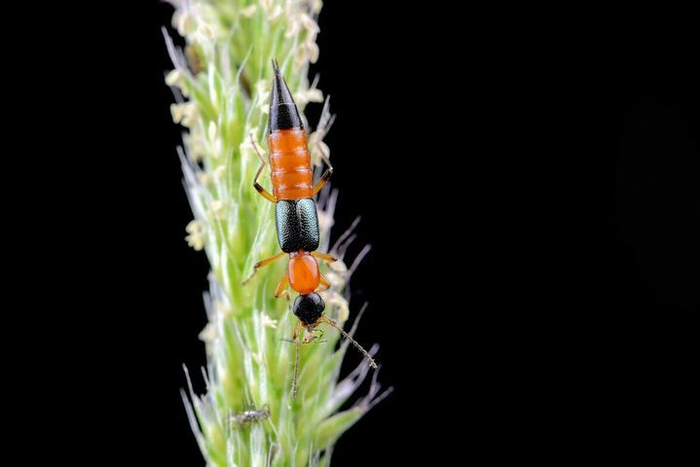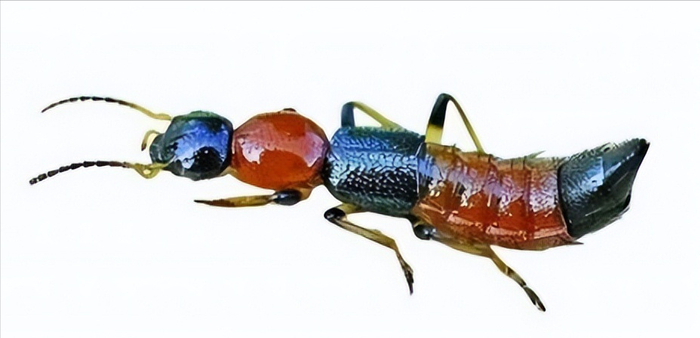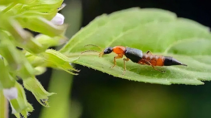 隐翅虫其实也是一种益虫,以蚜虫等更小的昆虫为食,在野外是很常见的,如果落到身上也别怕,吹口气将它吹跑即可。