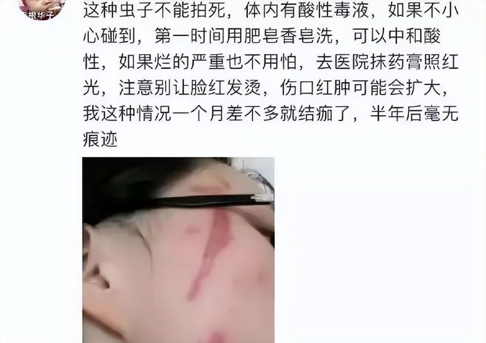 既然有这个名号,那就是不能轻易触碰了,是的!当这种虫子飞到人的皮肤上时,如果把它拍死在皮肤上面,那就很有可能导致皮肤灼伤,出现大块的红斑等,这样的皮肤病就是“隐翅虫皮炎”。