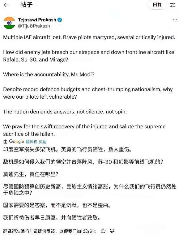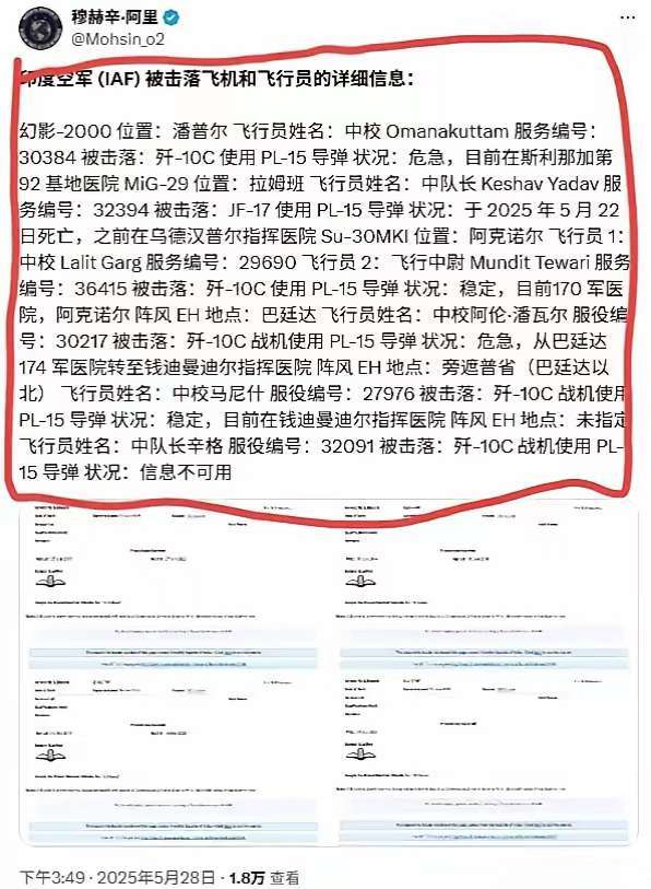 其中包括飞行员被击落后就医的医院和病情状态都说的很清楚,印度方面再次被打脸,就看它这回接不接招了。