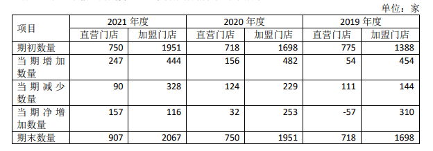 2021年疫情好转的情况下,良品铺子直营门店新开247家,加盟门店新开444家,合计691家,加盟门店占比64%。