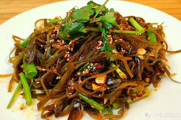 凉拌海带丝不仅美味可口,而且富含蛋白质、膳食纤维和多种维生素。海带还具有降血压、降胆固醇、防治动脉粥样硬化等功效,对身体健康非常有益。
