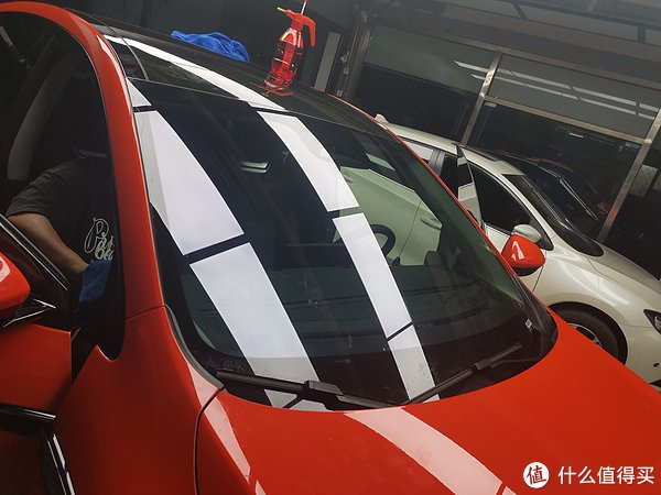 膜是通过顺丰发货的,由于发货地址近,隔天就到了。到了立马就联系施工门店进行施工。两个师傅,踏踏实实的贴了快2小时才完工。