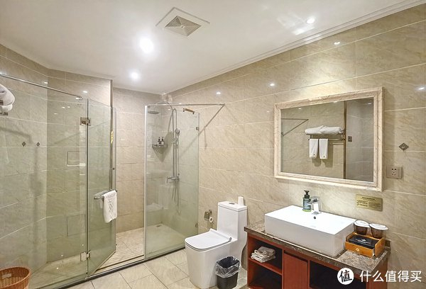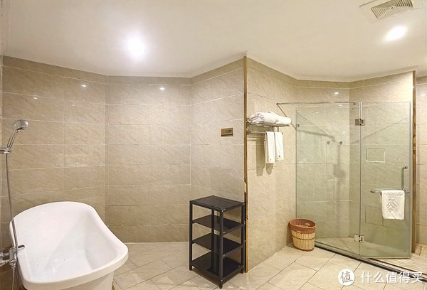 卫生间也挺大的,淋浴间干湿分离,单台盆,居然还有个浴缸,不过尺寸不算大,没有使用。能用淋浴洗个热水澡就挺好了。