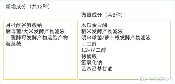 非微量成分的4中新增成分分别为:月桂酰谷氨酸钠、酵母菌/大米发酵产物滤液、二裂酵母发酵产物溶胞产物、海藻糖。