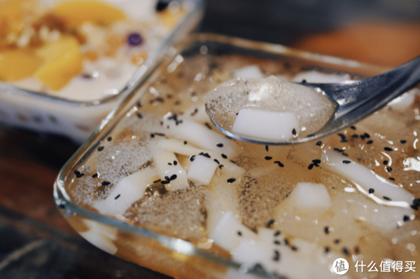 福鼎的杏仁豆腐有两种,一种是透明的,还有一种就是图中奶白色的,味道上的区别不大。