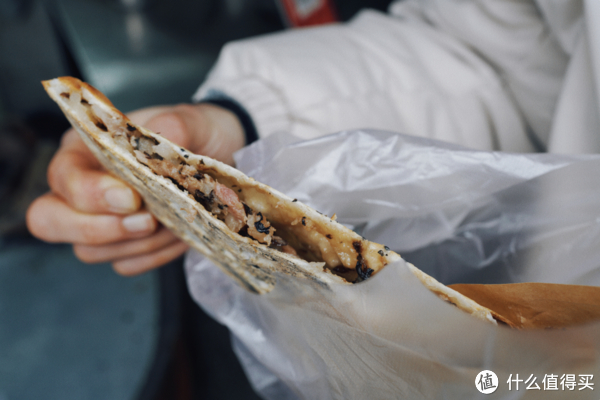 他们家烧饼最优秀的地方是在于饼皮的均匀度,我是“披萨不吃边边派”,他们家的饼皮和中间差不多薄,一样的干脆。