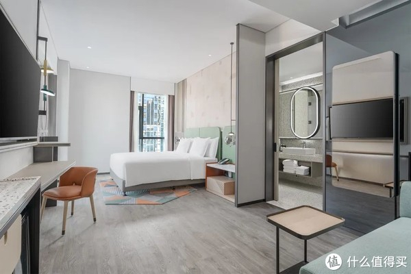 房间的设计非常温馨舒适,现代感的配色和几何线条设计,让房间充满了活力与动感。